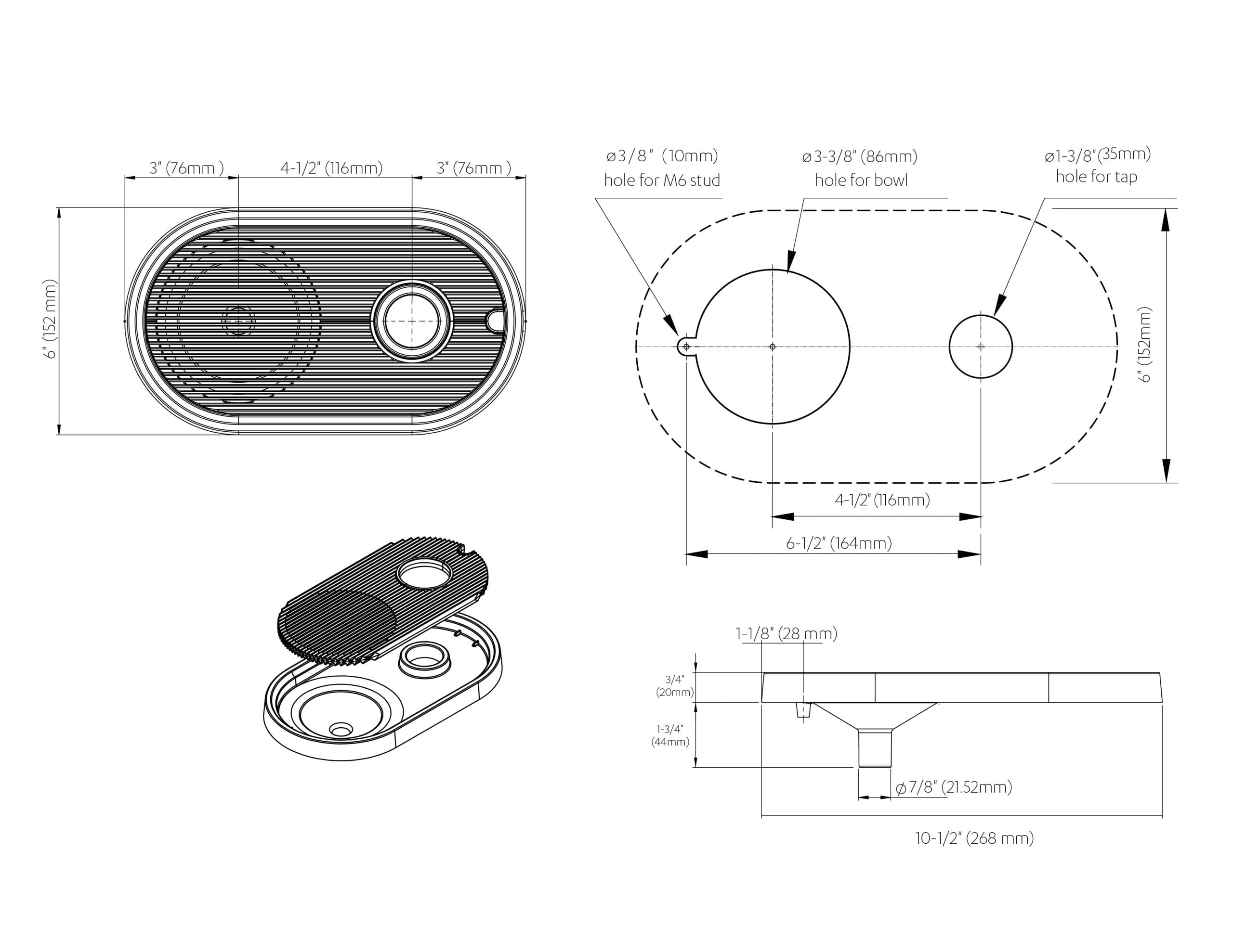 - Space Requirements: 10 1/2″ long x 6″ wide (268mm x 152mm)